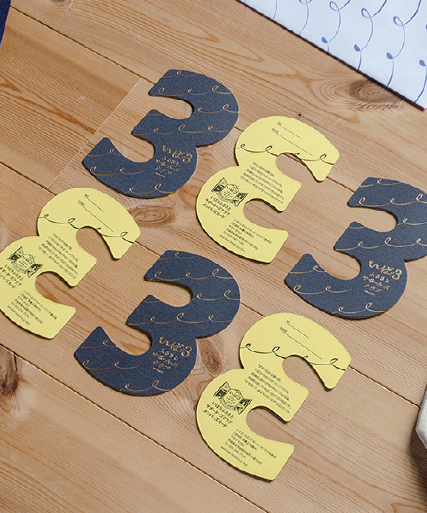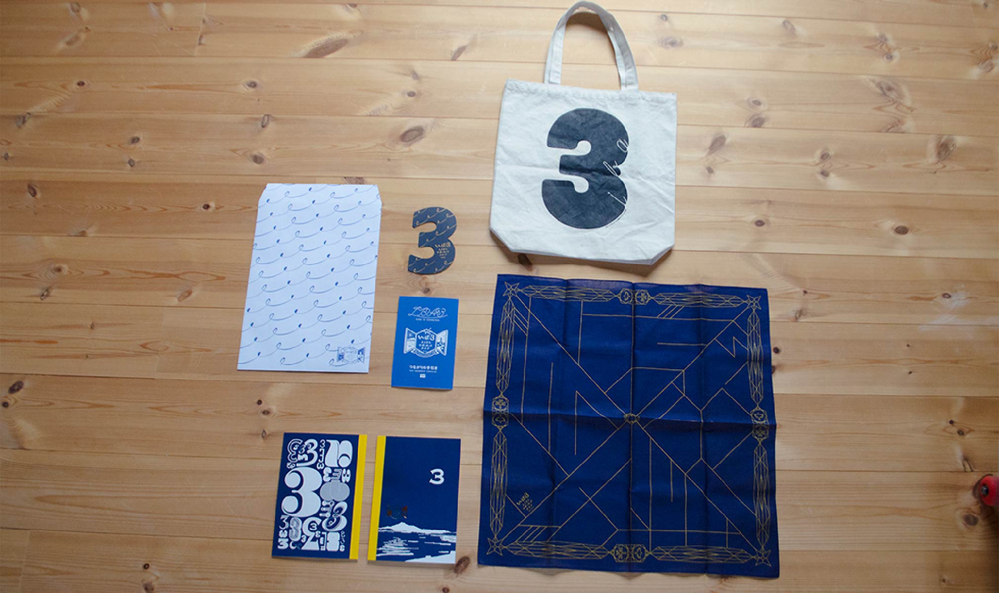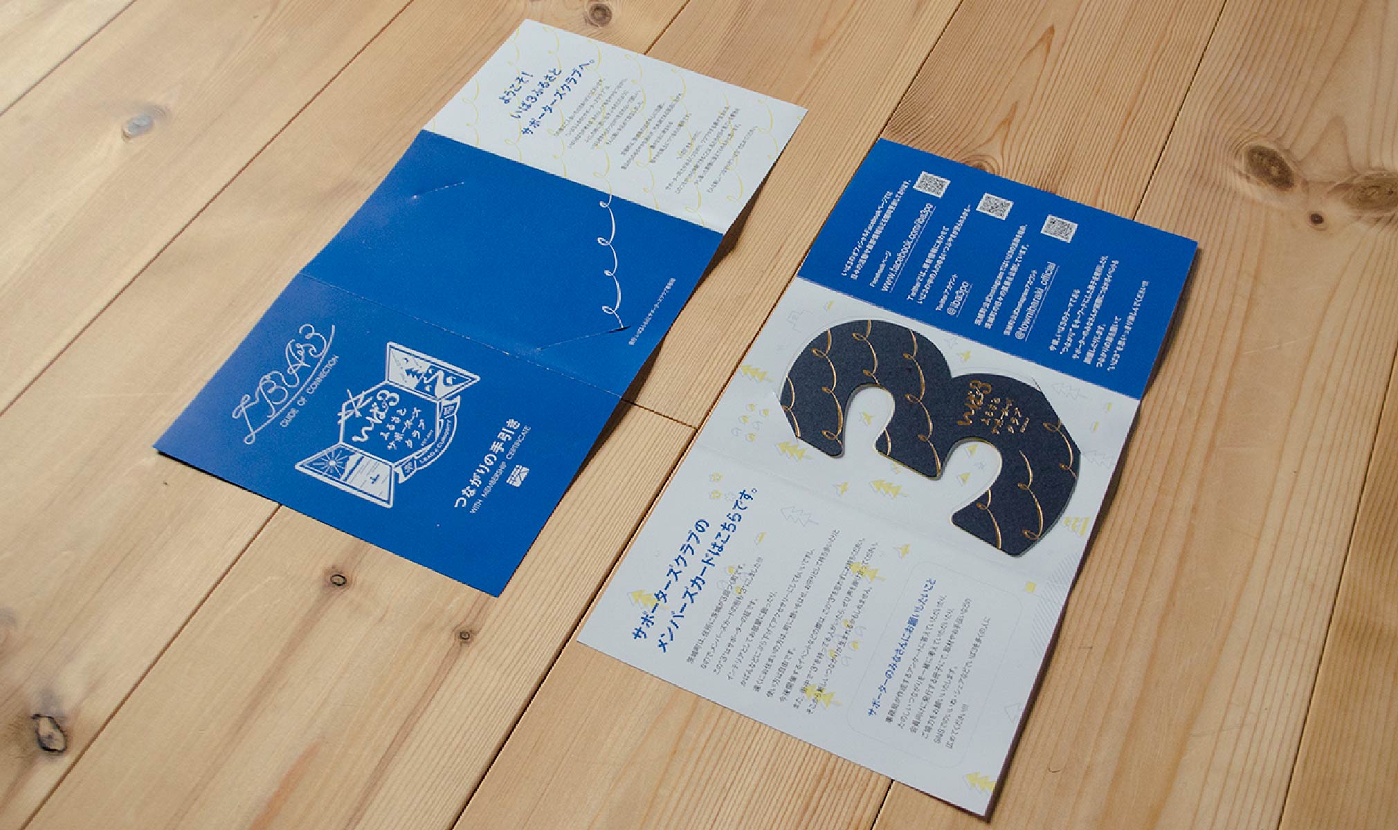 いば3のサポーターにご登録いただくと、もれなく“3”をモチーフにデザインしたノート、バンダナ、トートバッグ、つながりの手引き、会員証をセットにしたサポーターズグッズセットをプレゼントいたします。